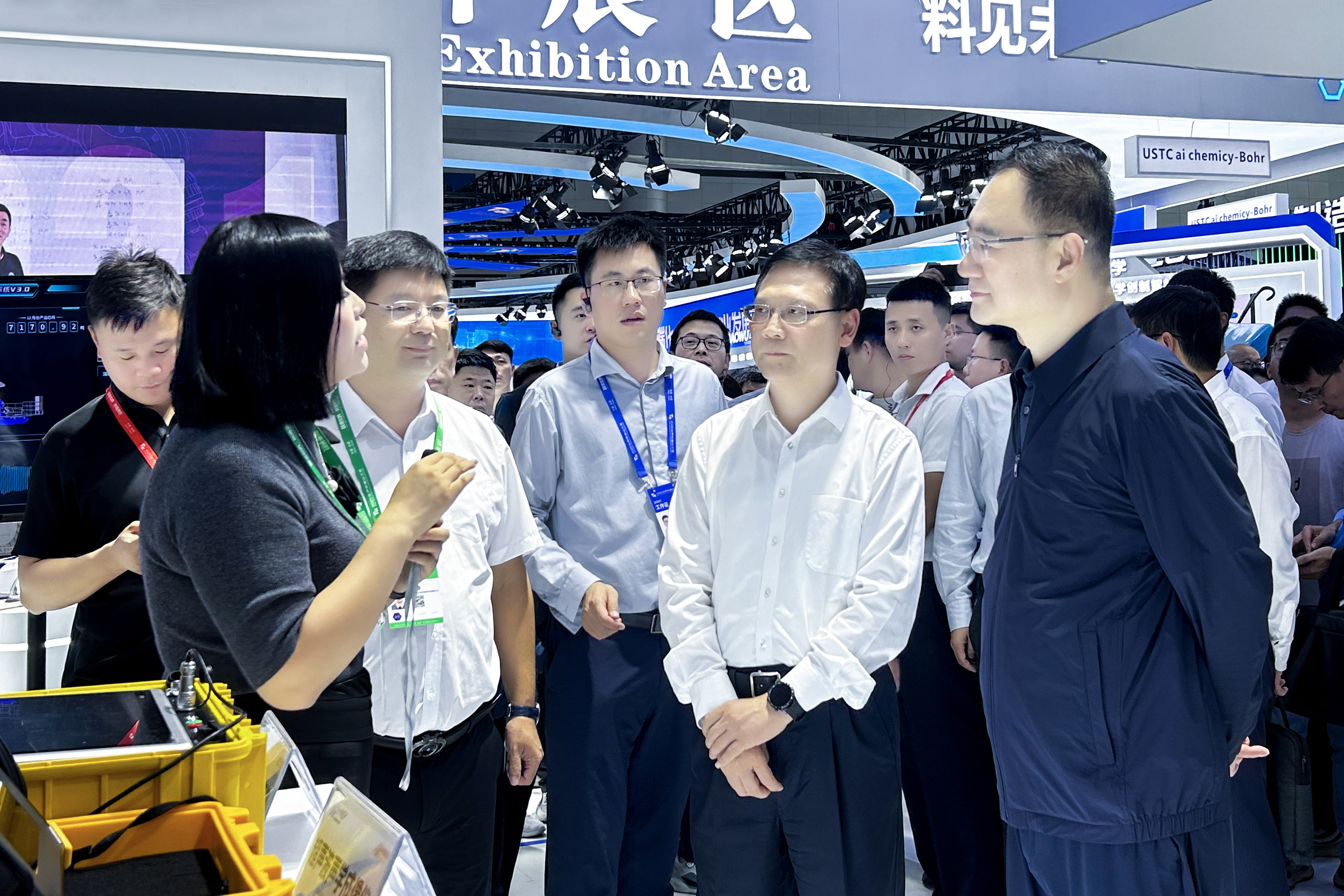 2025年9月21日,安徽省省长王清宪、省工信厅厅长冯克金等领导莅临中科昊音展位视察指导。公司董事长兼总经理刘敏,联合创始人徐泉向领导团队详细汇报了我司依托自主研发的CMFMC