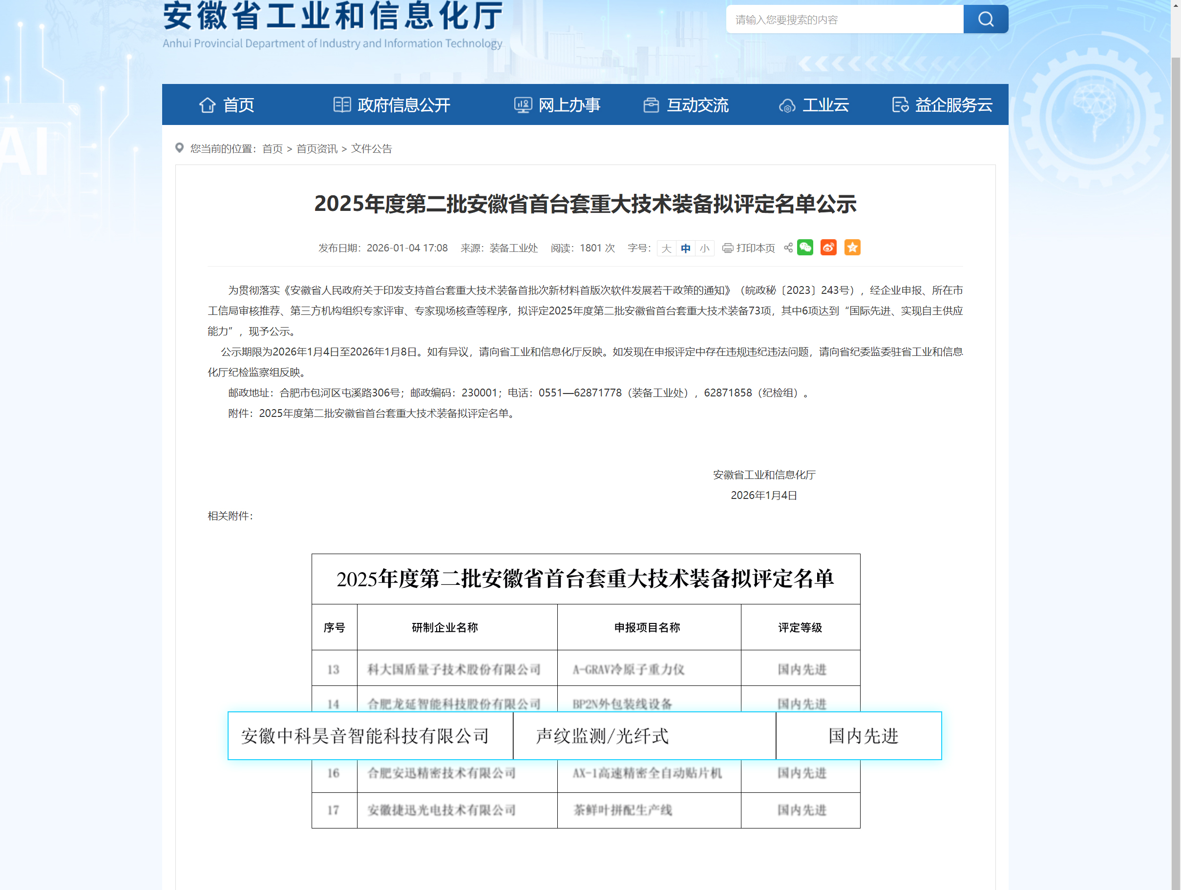 「喜报」| 中科昊音成功入选2025年度第二批安徽省首台套重大技术装备企业